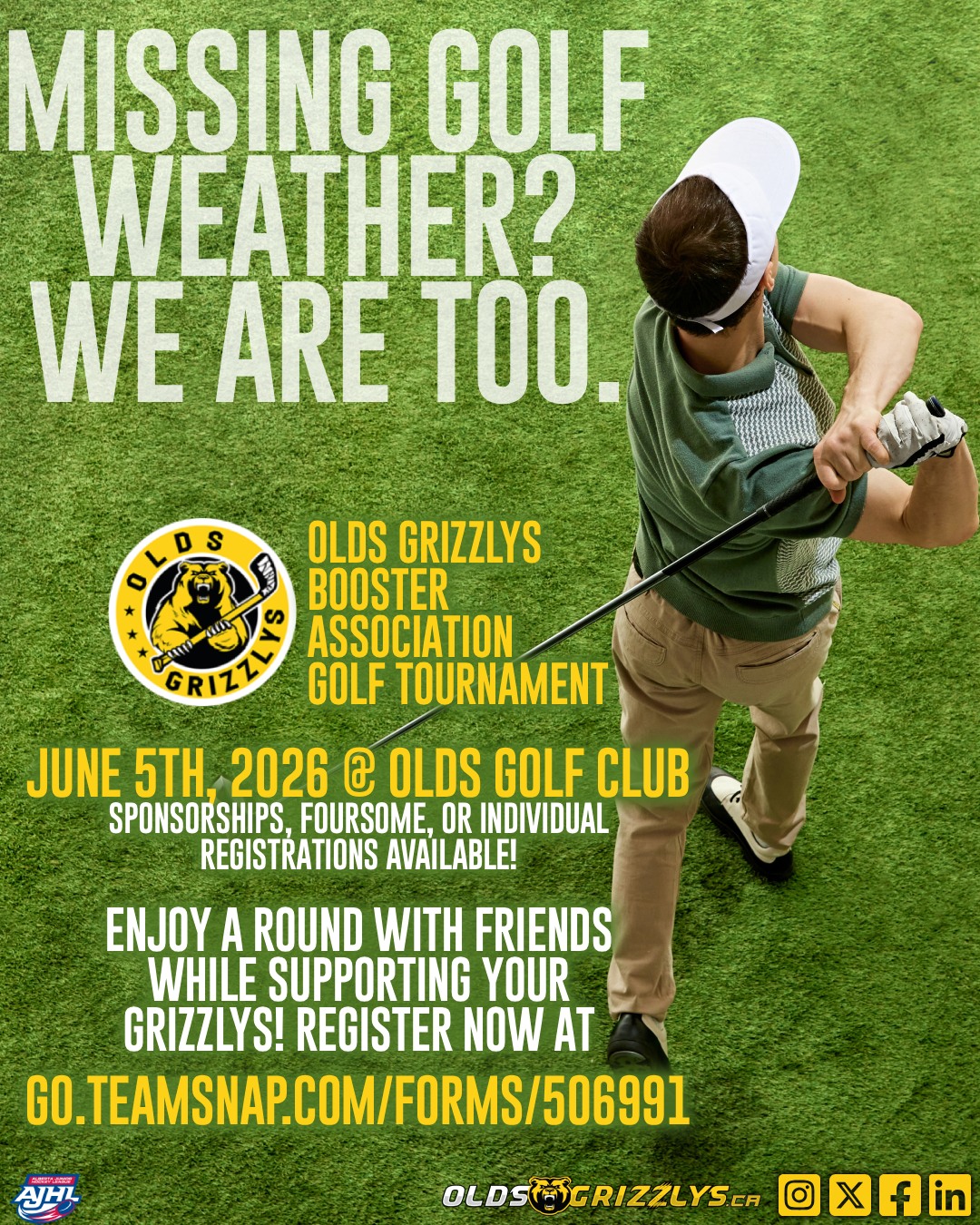 If you’re already thinking about future tee times, so are we! Our #Grizzlys Booster Association Golf Tournament is lined up for June 5th, so before you start scraping the ice off your vehicles remember to head to go.teamsnap.com/forms/506991 via the link in our profile! #GrizzCountry #AJHL #juniorhockey The Grizzlys are BACK at the Olds […]